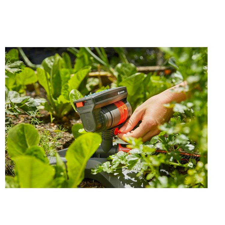 GARDENA AquaZoom compact -keinusadetin ei pelkästään vie pois kasvimaan tai kukkapenkkien kastelun vaatimaa vaivaa, vaan säästää lisäksi kallisarvoista aikaasi. Ja mikä tärkeintä, sadetin ja sen tarjoama tasainen kastelu varmistavat kasvien ja vihannesten hyvinvoinnin. Tarkat suuttimet ehkäisevät vesilätäköiden muodostumisen.