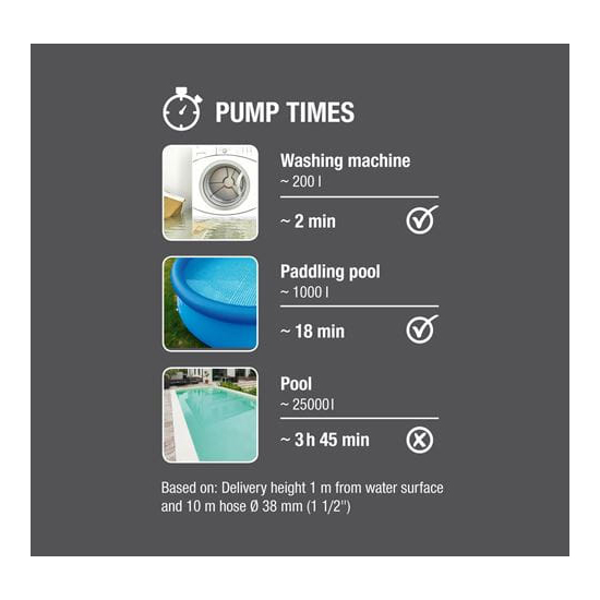 Kirkkaalle vedelle tarkoitettu GARDENA 9000 pumppu – tehokkaaseen veden pumppaukseen esimerkiksi sadevesisäiliöistä ennen talvea tai veden poistamiseen kellaritiloista. Vähän energiaa kuluttava uppopumppu on erittäin tehokas ja suorituskykyinen. Tämä laadukas tyhjennyspumppu on varustettu moottorilla, jonka teho on 300 wattia. 0,6 baarin maksimipaineella ja 6 metrin nostokorkeudella vettä voidaan pumpata jopa 9000 litraa tunnissa. Pumpun alin imukorkeus on peräti 2 mm. Älykkään muotoilun ja suojateknologian ansiosta pumppu on turvallinen ja luotettava käytössä. Käytön jälkeen pumppu on helppo puhdistaa, ja siinä on myös käytännöllinen kantokahva, jonka avulla siirtäminen onnistuu kätevästi. Säädettävä kohokytkin suojaa pumppua haitalliselta kuivakäynniltä. GARDENAn energiaa säästävässä pumpussa on useita liitäntävaihtoehtoja, jotka hyödyntävät kätevää GARDENAn liitinjärjestelmää. Pumppuun voidaan liittää letkuja, joiden halkaisija on 25 mm (1”) tai 38 mm (1 ½”). G1”-liitäntä tekee kirkkaalle vedelle tarkoitetusta 9000-pumpusta vieläkin monikäyttöisemmän. Tyylikäs uppopumppu tarjoaa monia käyttömahdollisuuksia kellarissa tai puutarhassa. Sitä voidaan käyttää paitsi tyhjennyspumppuna, myös esimerkiksi uima-altaassa. GARDENAlla on yli 40 vuoden kokemus tyhjentämiseen, kasteluun ja kotitalouden vedensiirtoon tarkoitetuista pumpuista. GARDENA-pumput vakuuttavatkin korkealla laadullaan ja viimeistellyillä yksityiskohdilla.