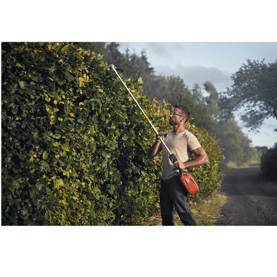 Husqvarna 325iLK -yhdistelmätrimmerissa moottori on sijoitettu taaksen hyvän tasapainon aikaansaamiseksi. Husqvarnan päästötön ja hiljainen hiiliharjaton moottori on yhtä tehokas kuin 25 cc:n bensiinimoottoria. 325iLK:n suorituskyky riittää haastavimpien tehtävien nopeaan ja tehokkaaseen hoitmiseen. Jaettavaan runkoputkeen on helppo asentaa tarvittava lisälaite monipuolisesta valikoimasta – trimmeriin sopivat samat lisälaitteet kuin Husqvarnan bensiinikäyttöisiin yhdistelmätrimmeriin. Monikäyttöinen kone sopii esimerkiksi ruohon ja pensaiden leikkaamiseen, puiden karsimiseen, reunojen siistimiseen tai puhdistustöihin. Voidaan käyttää joko sisäisen tai ulkoisen akun (akkuvyö tai reppuakku) kanssa.
