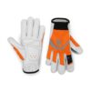 Kestävät, yhden koon käsineet. Kämmenosa on vuohennahkaa ja kämmenselkä spandex-kangasta. Vuohennahka sisältää kosteudelta suojaavaa luonnollista rasvaa ja sopii siksi vaativiin töihin. Kumipintaisessa kalvosimessa on puuvillakiinnitys, minkä vuoksi se istuu erinomaisesti ranteen ympärille.