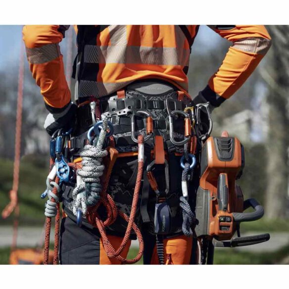 Husqvarnan kiipeilyvaljaat ovat erittäin mukavat ja todella helposti muunneltavat, joten ne ovat tukenasi työskennellessäsi pitkiä ja vaativia työpäivä puun latvassa. Pehmustettu selkäosa ja säädettävät jalkalenkit lisäävät mukavuutta ja liikkuvuutta vähentäen samalla fyysistä rasitusta. Tuplasilta ja kestävä, monikerroksinen rakennelma lisäävät turvallisuutta. Säädettävät asetukset mukautuvat erilaisiin työskentely- ja kiipeilytapoihin samalla, kun monipuoliset lisäosien kiinnitysvaihtoehdot mahdollistavat kaikkien tarvittavien työkalujen kiinnittämisen aina käden ulottuville.