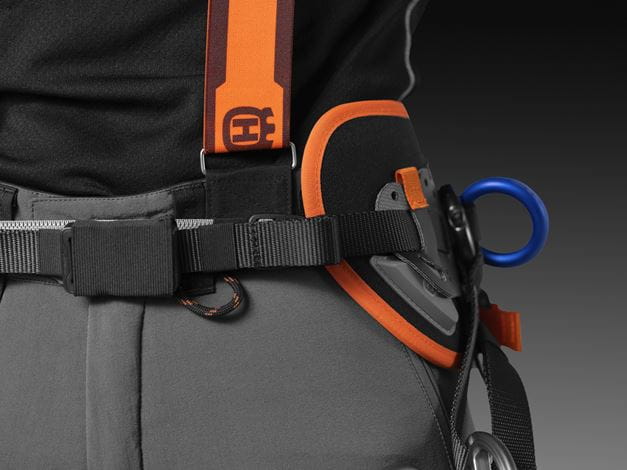 Erittäin leveät olkaimet säädettävällä pituudella, jotka sopivat täydellisesti arboristien turvahousujen kiinnityslenkkeihin, joten ne on helppo irrottaa ja pukea.