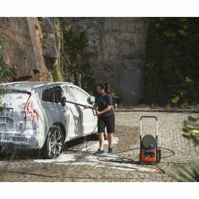 Husqvarna PW 370 on ensiluokkainen korkeapainepesuri, joka on kehitetty puhdistamaan kaikki ulkopinnat. Erittäin korkealla paineella pestessä se puhdistaa jopa kaikkein pinttyneimmän lian. Siinä on erittäin pitkä ja joustava letku, joka tarjoaa hyvän ulottuvuuden ja helpon käytön, ja joka on myös teräsvahvistettu hyvän kestävyyden takaamiseksi. Luotettava ja tehokas oikosulkumoottori sekä metallipumppu tarjoavat ensiluokkaista suorituskykyä. Älykkäät anturit ja digitaalinen näyttö pitävät sinut ajan tasalla virheilmoituksilla, tuotetiedoilla ja yksityiskohtaisilla ohjeilla. Kaikentyyppisten pintojen puhdistaminen aina kevyestä huuhtelusta matalapainesuuttimella vaativampiin tehtäviin saakka on vaivatonta. Uuden 3-in-1 Multi-Lancen avulla voit vaihtaa nopeasti eri tehtävien välillä, sillä se mahdollistaa suuttimen vaihdon vain yhdellä napsautuksella. Varustettu kätevällä säilytystelineellä, joten sinulla on kaikki tarvitsemasi helposti kätesi ulottuvilla.