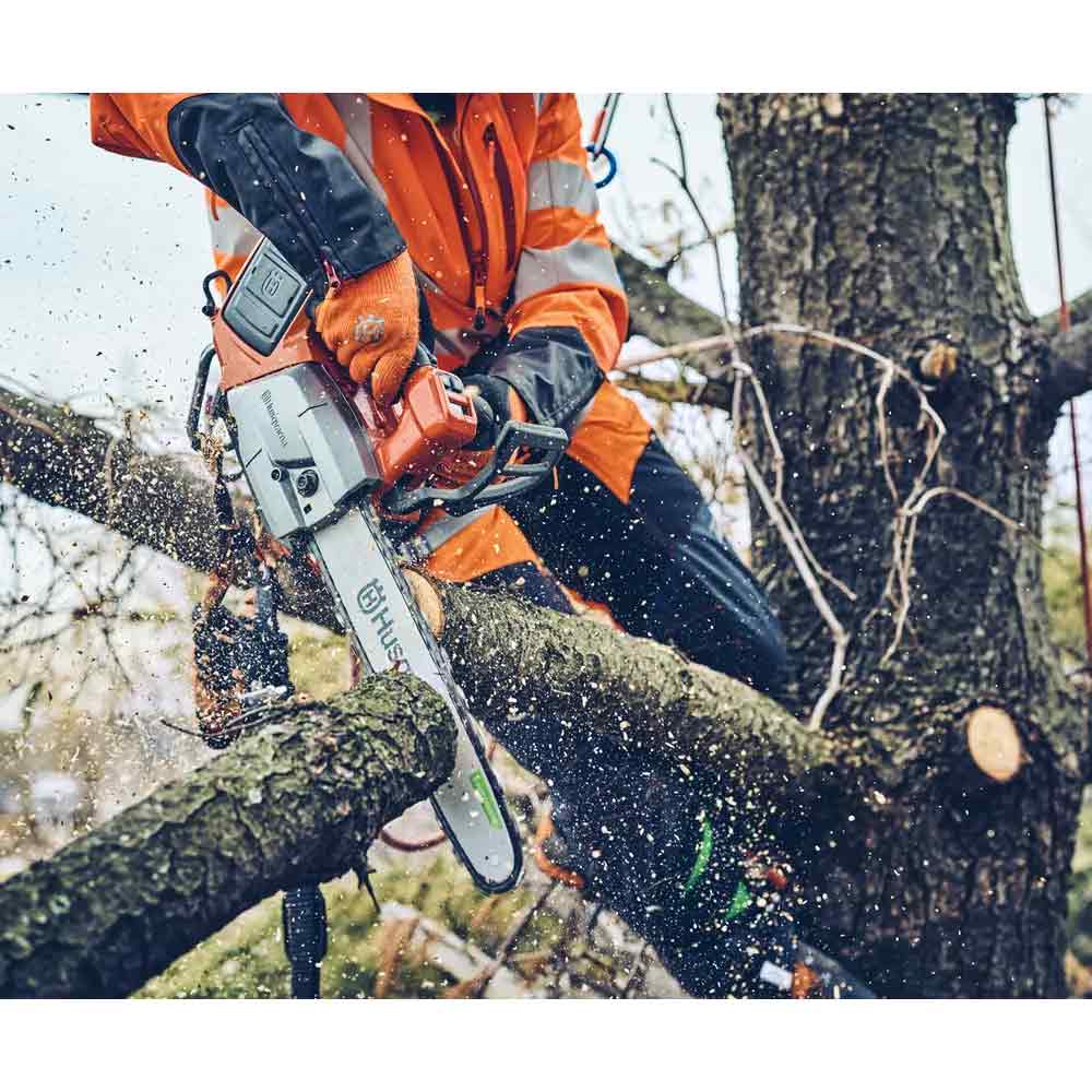 Husqvarna T542i XP® on maailman ensimmäinen yläkahvallinen keskipakokytkimellä varustettu akkumoottorisaha. Se tarjoaa ainutlaatuisen leikkuutehon ja erinomaisen kapasiteetin. Tämä näppärä 36 V akulla varustettu yläkahvallinen moottorisaha on erittäin tehokas työkalu ammattimaisille puukiipeilijöille, jotka haluavat puunlatvassa työskennellessään hyödyntää kaikki akkusahan edut bensiinisahan helpolla ohjattavuudella ja reaktiokyvyllä höystettynä. Suuri ketjunopeus, X-PRECISION™-terälevy ja tehokas SP21G-ketju tekevät leikkauksista nopeat ja tarkat.
