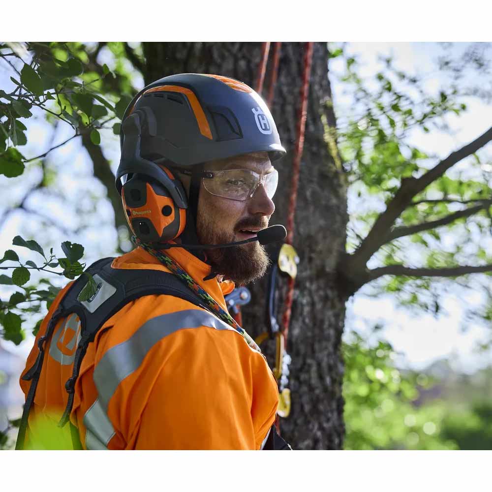 Husqvarna X-COM Active suojaa kuuloasi mahdollistaen samalla luotettavan ja kristallinkirkkaan sisäpuhelimen. Husqvarnan erityisesti puunhoitotiimeille suunnitteleman, kestävän ja mukavan kuulonsuojainjärjestelmän kahteen suuntaan toimiva sisäpuhelin mahdollistaa jopa 10 hengen välisen samanaikaisen keskustelun. Kuuloasi suojataan kovilta ääniltä, mutta pystyt silti kuulemaan mitä ympärilläsi tapahtuu, liittämään laitteesi Bluetooth®-yhteyden avulla ja lisäämään ulkopuolisia henkilöitä keskusteluun puhelimen välityksellä. Yhteensopiva Husqvarna Technical ja Arborist Spire -kypärien kanssa. Pakkaukseen kuuluu kaksi adapteria, joiden avulla kuulokkeiden kiinnitys onnistuu.