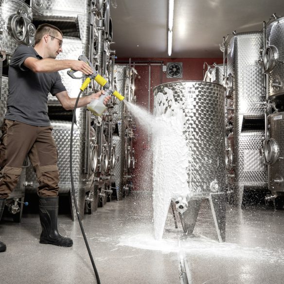 Kylmävesipesureille ja kuumavesipesuereille sopiva Advance-vaahdotin tarjoaa tehokkaan ja ergonomisen tavat pesuainevaahdon levittämiseen. Litran vetoisessa säiliössä on mukana pikasäädöllä varustettu, kolmiportainen pesuaineannostelija. Tarkan annostelun ja vaahdotuskulman säädön avulla saadaan tasalaatuinen vaahto niin suurille pinnoille kuin tarkkaa työskentelyä vaativiin kohteisiin. Leveän tai kapean vaahtosuihkun pikasäätö tapahtuu keltaista kärkiosaa eteen- tai taaksepäin liikuttamalla. Kestävä messinkirunko ja nikkelipinnoite tarjoavat suojaa kuumaa pesuvettä ja vahvoja pesuaineita vastaan. Tämä malli on mitoitettu pesurille, jonka vesimäärä 400-600 l/h ja jossa ei ole Servo Control -säätöä.