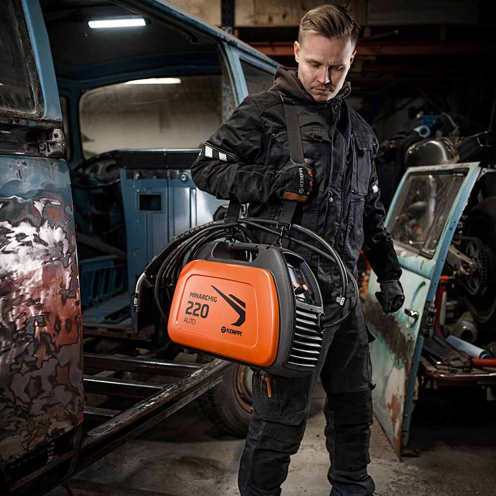 - Mukana 3 metrin hitsauspoltin ergonomisella pistoolin kahvalla, kaapelisarjalla ja kantohihnalla.