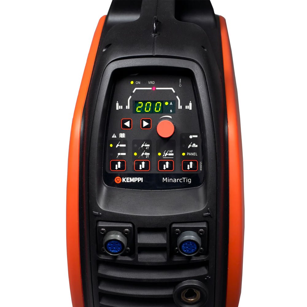 Kannettava TIG-hitsauslaite, jossa on DC TIG-, pulssi-TIG- ja puikkohitsaustoiminnot ja joka tuottaa 200 A yksivaihevirransyötöllä.