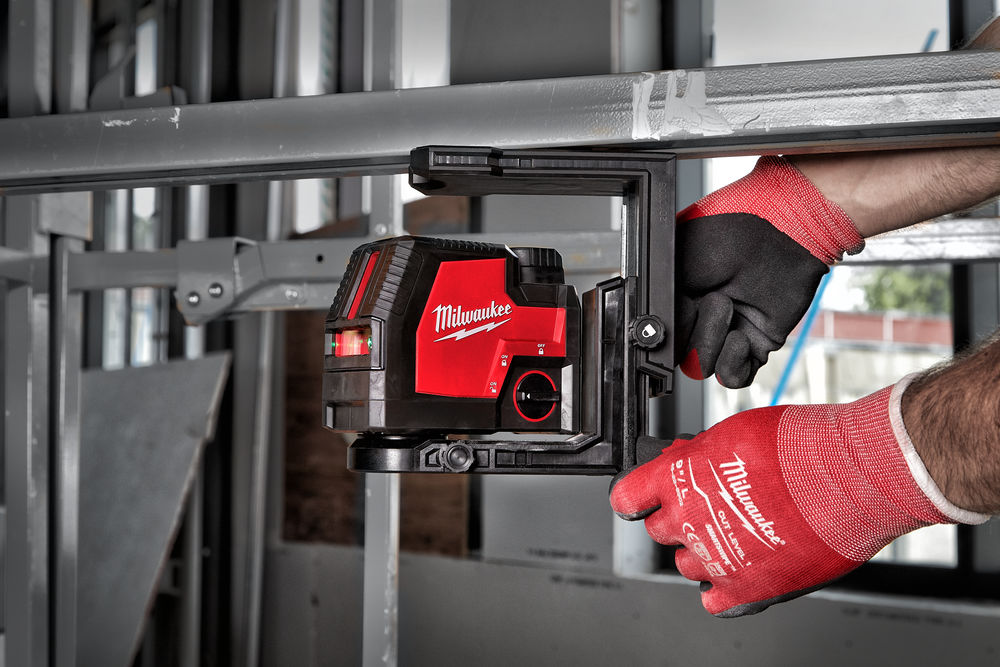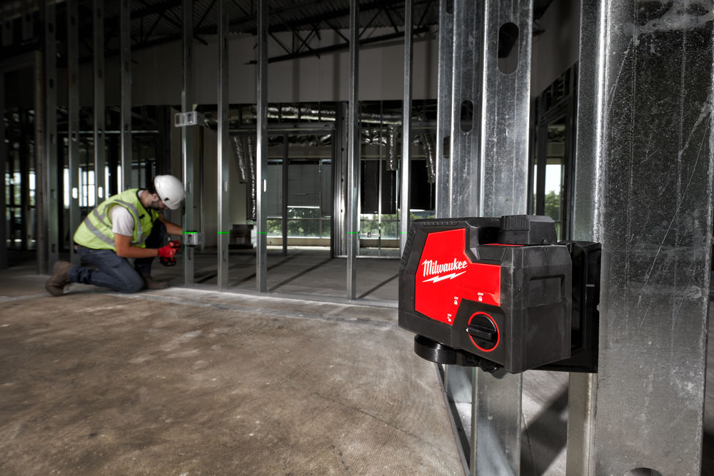 - Magneettikiinnike mahdollistaa laserin 360° kääntämisen ja sisältää myös integroidun hienosäätönupin nopeaan linjaamiseen