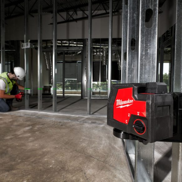 - REDLITHIUM™ USB-ladattava ristiviivalaser vihreällä pysty- ja vaakaviivalla ja luotipisteillä (ylös ja alas) mahdollistaa monipuolisen työskente