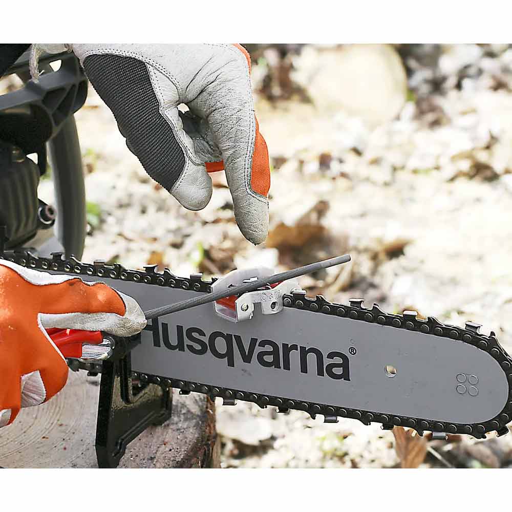 Husqvarnan yhdistelmäviilanohjaimessa on yhdistetty viilaohjain ja alennuskaavio. Käytetään pyörö- ja lattaviilan kanssa oikean viilauskulman saamiseksi. Saatavana kaikkiin Husqvarnan teräketjuihin.