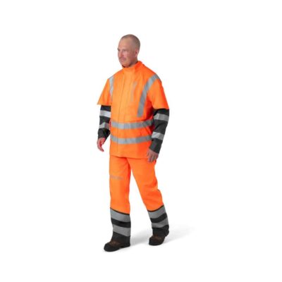 Polyesterineuloksesta valmistetut sadelahkeet, joissa on kestävä yksipuolinen PU-pinnoite ja hitsatut saumat. Kangas on vahvaa, mutta kuitenkin kevyttä ja kahisematonta. Takki on suunniteltu niin, että ilma pääsee kiertämään hyvin sen sisällä, jolloin pitkäkään sadepäivä ei tunnu tukalalta. Takin sisällä on rintatasku ja etupuolella piilotaskut. Taskut ovat vesitiiviit, joten taskujen sisältö on hyvin suojassa ja pysyy kuivana. Hyväksytty standardin EN ISO 20471 luokan 3 ja standardin EN343 mukaisesti.