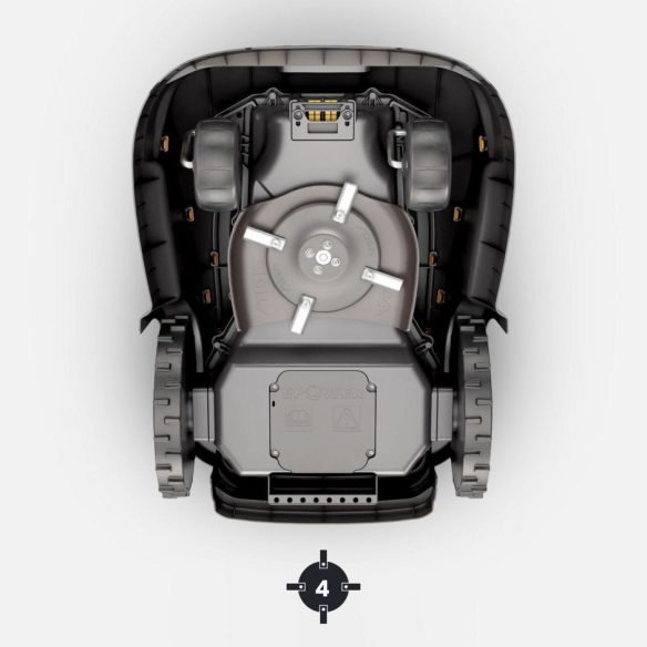 Huoltoa varten tukeva ulkokuori on helppo irrottaa ilman työkaluja. Jos koneen runko on puhdistettava suoralla vesivirtauksella, varmista, että robotti pysyy työasennossaan (vaakasuorassa, pyörät alaspäin). Jos puhdistat vain terät, käytä harjaa. Suoria vesivirtoja ei saa käyttää, kun robotti on ylösalaisin.