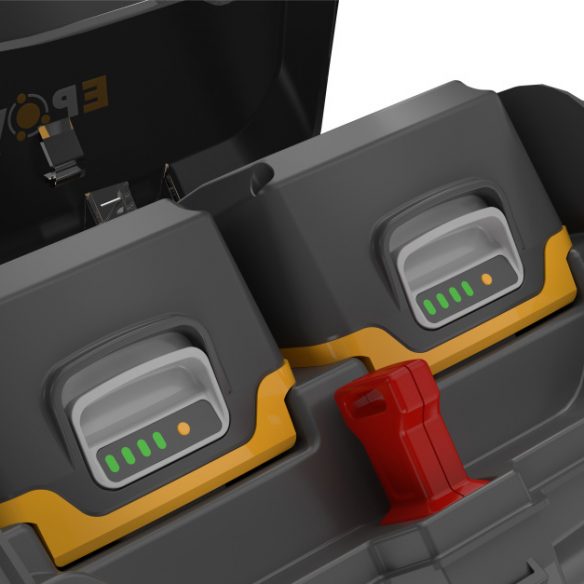 Voimanlähteenä kaksi 20 V STIGA ePower -akkua, jotka sijaitsevat aisassa olevassa akkukotelossa helpon akkuihin pääsyn ja paremman painojakauman saavuttamiseksi Kun et käytä STIGA Aeroa, voit käyttää sen akkuja muissa STIGAn 1-sarjan puutarhatyökaluissa muiden töiden jatkamiseksi.