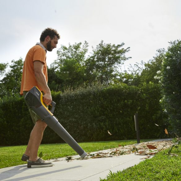 Johdoton BL 500e Kit -lehtipuhallin on suunniteltu tekemään pihan puhdistamisesta nopeampaa ja helpompaa. Akkukäyttöisenä se on päästötön, siinä on vähemmän tärinää ja paljon vähemmän melua kuin tyypillisessä polttomoottorikäyttöisessä lehtipuhaltimessa. Ergonominen kahva varmistaa käyttömukavuuden, samalla kun kumituet suojaavat BL 500e Kit -puhaltimen alapintaa. Optimaalisesti sijoitettujen moottorin ja siipipyörän ansiosta BL 500e Kit -lehtipuhaltimen ilman nopeus yhteen suuntaan on jopa 55 m/s, mikä mahdollistaa kaikkien ulkopintojen puhdistamisen nopeasti ja helposti. Sen helppokäyttöisestä ohjauspaneeli-näppäimistöstä voit valita kolmesta eri ilman nopeudesta. Voit valita matalan ilman nopeuden kevyille materiaaleille nurmikoilla ja soralla, keskitehoisen ilman nopeuden ruohojätteelle ja lehdille asfaltilla ja muilla kiinteillä pinnoilla tai täyden ilman nopeuden vastasataneelle lumelle, märille lehdille ja muille haastavammille roskille.