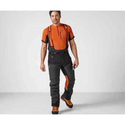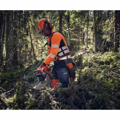 Husqvarna Technical Robust -turvahousut tarjoavat erinomaista mukavuutta ja kestävyyttä ykkösluokan sahasuojalla pitkiin metsätyöpäiviin vaativassa ympäristössä. Verkkokankaan ja monien vetoketjujen ansiosta housut ovat todella hengittävät. Housujen etuosa ja haarakiila on valmistettu erittäin kestävästä Dyneema®-kankaasta ja vyölenkit sekä lahkeen alaosa on vahvistettu vielä Cordura®-materiaalilla, joten housut ovat äärimmäisen kestävät. Punkkisuoja nilkkojen ympärillä ja neljään suuntaan joustava kangas takaosassa lisäävät käyttömukavuutta, jotta jaksaisit olla parhaassa terässä koko työpäivän ajan.